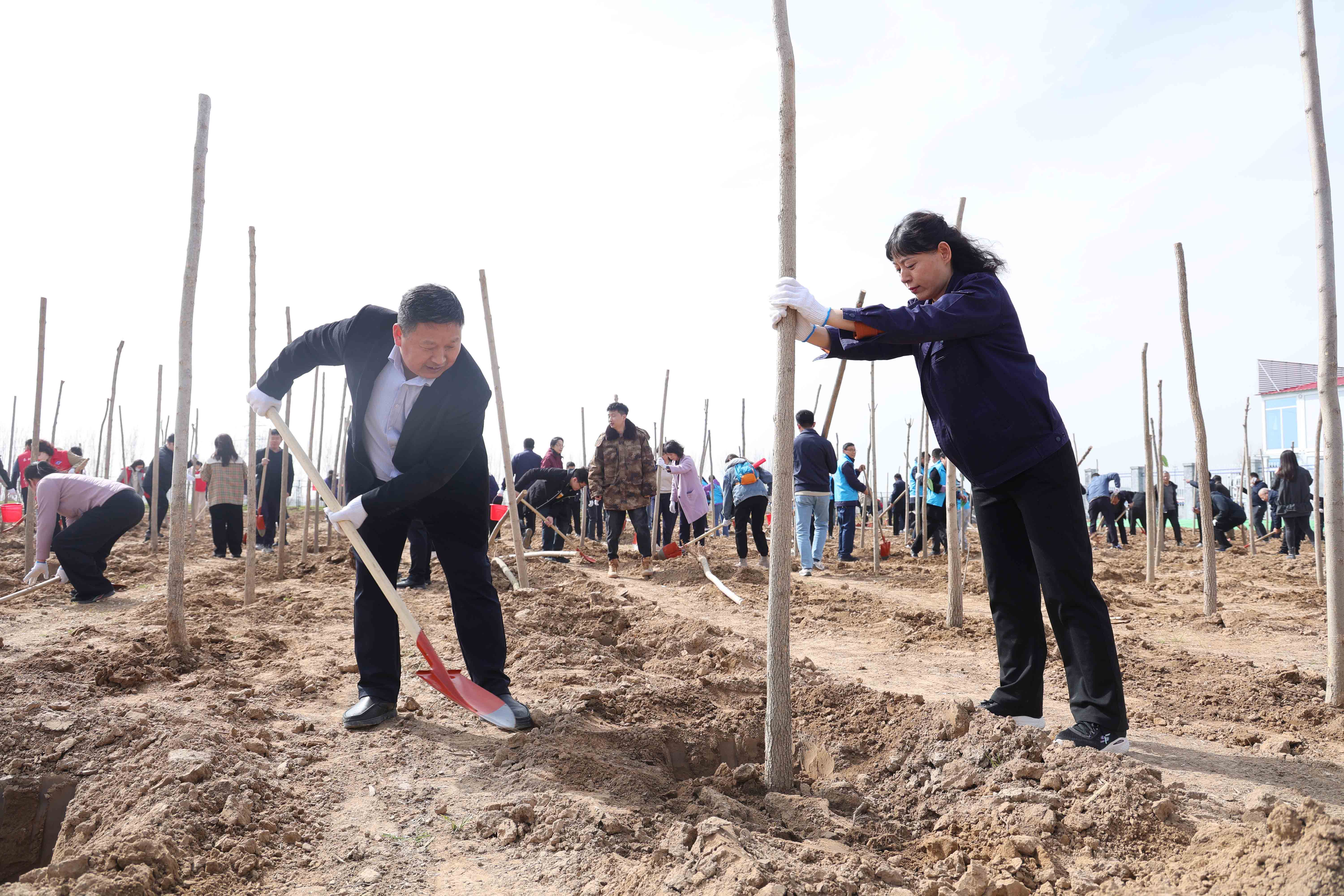開幕儀式結束后,200余名干部職工挖土、扶苗、培土,動作嫻熟有序,與周邊為水庫清基的工程機械遙相呼應。本次活動共栽植白蠟樹苗500余株。此次活動通過政企聯(lián)動模式,將工程建設與生態(tài)建設有機結合,既以實際行動弘揚了“植綠、護綠、愛綠”生態(tài)文明新風尚,也為太平水庫增添了綠色底蘊。