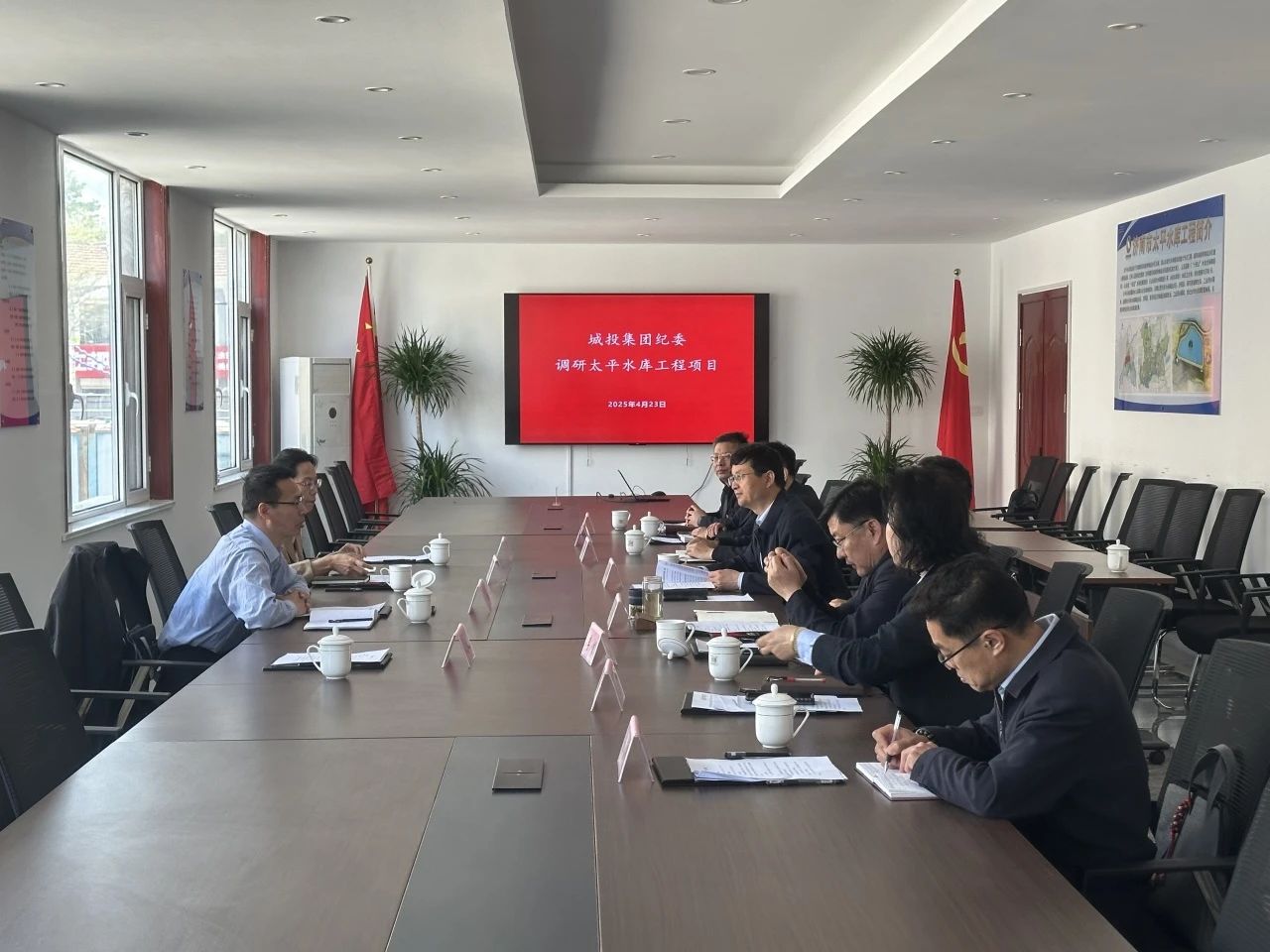 ? ? ??4月23日,濟(jì)南城投集團(tuán)黨委委員、紀(jì)委書記、監(jiān)察專員李凱,紀(jì)委副書記陳朝暉一行到濟(jì)南市太平水庫(kù)工程圍繞深入貫徹中央八項(xiàng)規(guī)定精神學(xué)習(xí)教育、黨風(fēng)廉政建設(shè)開展情況進(jìn)行調(diào)研,深入了解工程建設(shè)情況,同時(shí)對(duì)工程建設(shè)招標(biāo)投標(biāo)領(lǐng)域突出問題進(jìn)行檢查。清源水務(wù)集團(tuán)領(lǐng)導(dǎo)班子及相關(guān)部室負(fù)責(zé)人陪同調(diào)研。