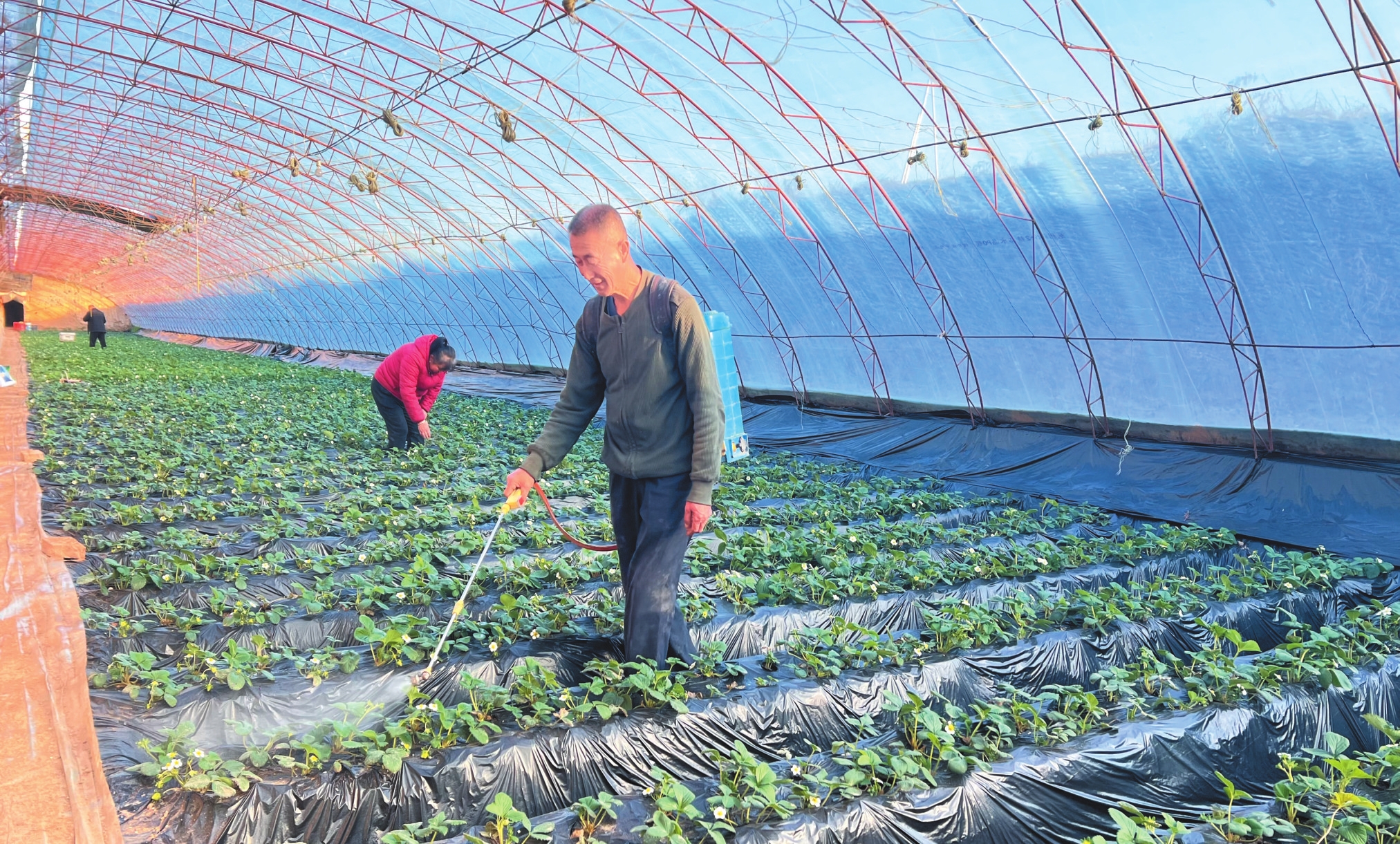 初冬寒意漸濃,河曲縣唐家會村的溫室大棚里卻充滿生機,張俊田夫婦正細致地給草莓做噴灑養(yǎng)護。(馬麗攝