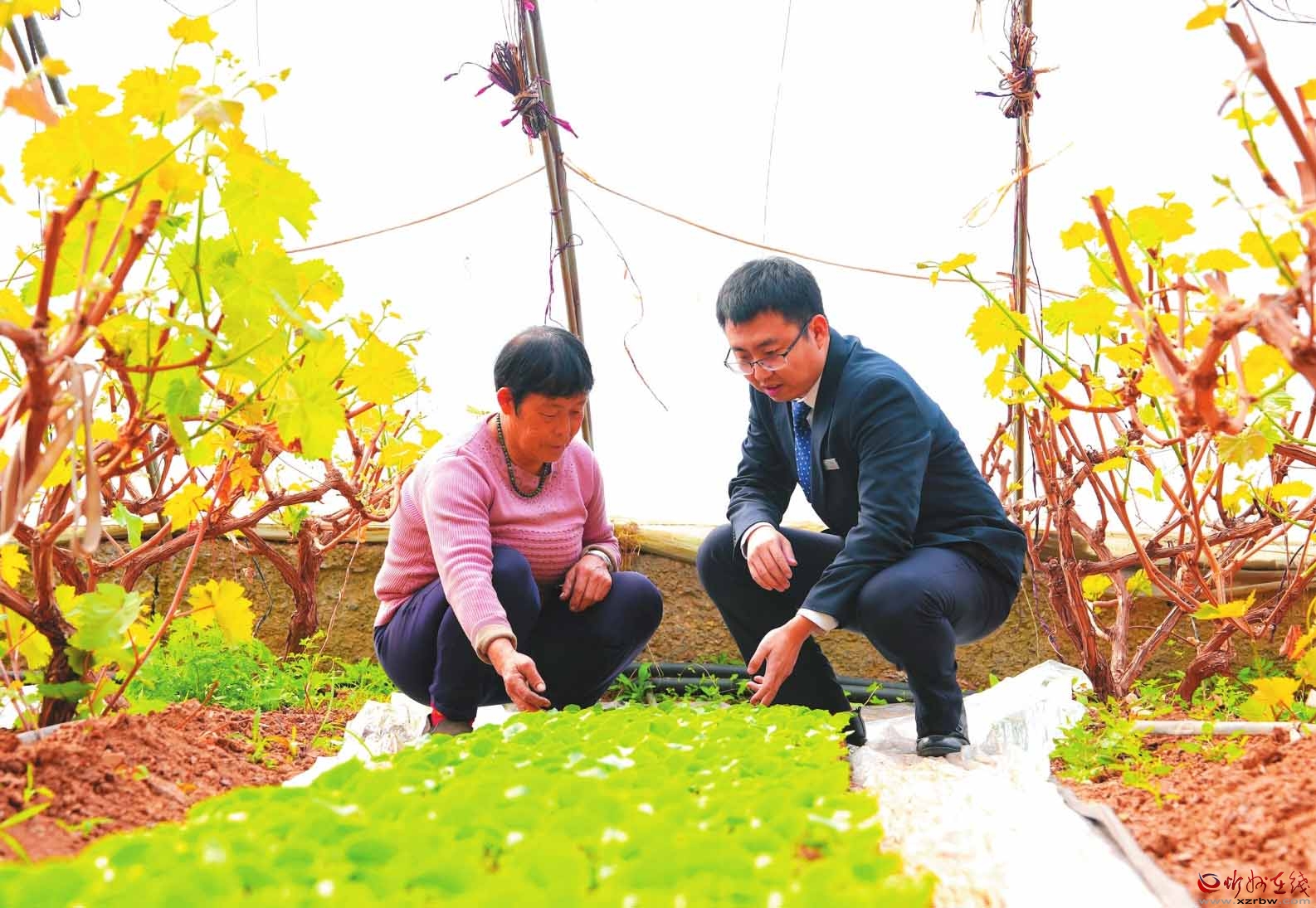今年以來,忻州農(nóng)商銀行聚焦鄉(xiāng)村特色種植產(chǎn)業(yè),通過加大信貸投放、加強(qiáng)技術(shù)指導(dǎo)等方式,切實(shí)幫助大棚種植戶解決生產(chǎn)經(jīng)營中面臨的資金與技術(shù)難題,為產(chǎn)業(yè)發(fā)展注入了金融動力。圖為該行工作人員在大棚種植基地了解作物生長情況。(任飛鴻攝)