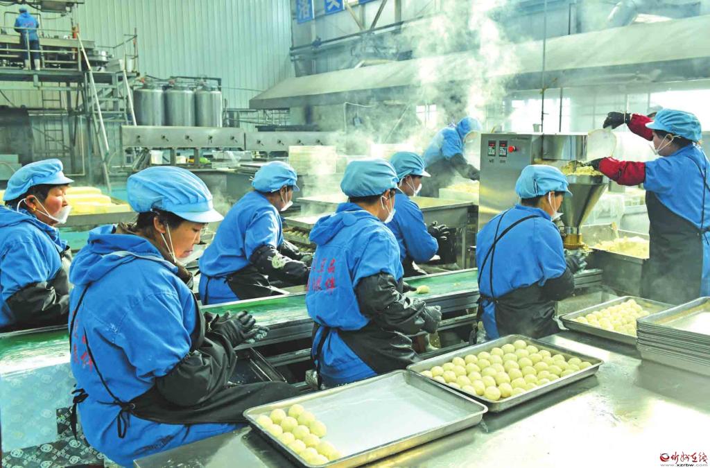 馬年春節(jié)臨近,年貨市場(chǎng)持續(xù)升溫。五臺(tái)縣傳統(tǒng)美食豆腐丸子憑借地道風(fēng)味與創(chuàng)新升級(jí),不僅成為當(dāng)?shù)匕傩毡貍涞哪旯?jié)美食,還通過(guò)線(xiàn)上電商平臺(tái)變身為全國(guó)熱銷(xiāo)年貨。圖為豆腐丸子加工現(xiàn)場(chǎng)。(盧俊華攝)