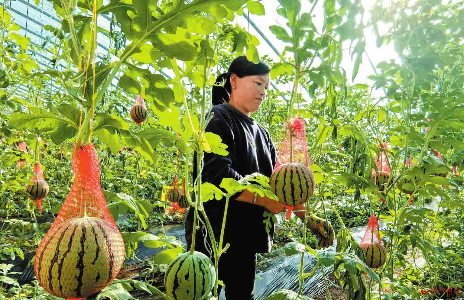 寧武縣充分發(fā)揮地域優(yōu)勢,把設(shè)施蔬菜產(chǎn)業(yè)作為鞏固拓展脫貧攻堅成果同鄉(xiāng)村振興有效銜接的有力抓手,積極扶持、鼓勵農(nóng)民大力發(fā)展周期短、產(chǎn)量高、單價高的設(shè)施蔬菜產(chǎn)業(yè),帶動群眾增收致富。圖為鳳凰鎮(zhèn)周家堡村農(nóng)民在大棚采摘西瓜。(記者劉紀森攝