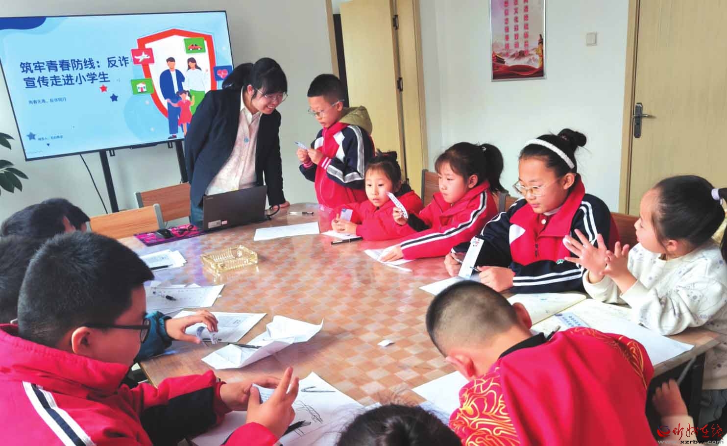 活動還推出“反詐知識家庭包”,引導(dǎo)學(xué)生將反詐技能帶回家,教會長輩防范詐騙。此次活動既守護青少年安全,也彰顯了企業(yè)社會責(zé)任。圖為反詐中心工作人員與學(xué)生做反詐小游戲。(付文金攝)