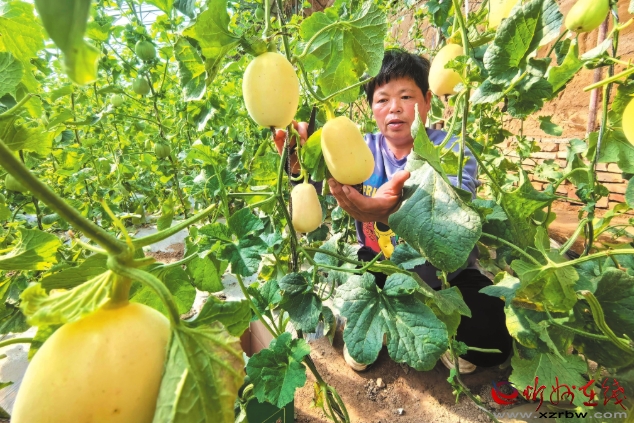 4月3日,忻府區(qū)部落村農(nóng)民于亮燈正在大棚內(nèi)采摘香瓜。該村從育苗到成熟全程嚴(yán)格把控,采用綠色生態(tài)種植方式,確保香瓜的品質(zhì)和口感。 (記者 劉紀(jì)森攝