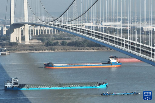 11月26日拍攝的南京新生圩長(zhǎng)江大橋(無(wú)人機(jī)照片)。(新華社記者 毛俊 攝)