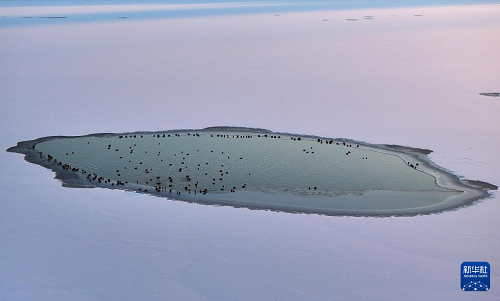 11月27日,一群綠頭鴨聚集在降雪后的松花江哈爾濱段未結(jié)冰水域覓食、休憩。落日金暉映照下,白雪、寒江和綠頭鴨組成了一幅寒江“戲雪”畫卷。