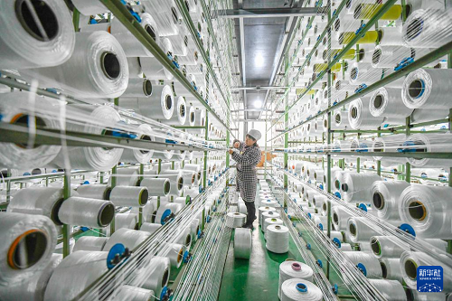 12月16日,工人在河北省遵化市西下營(yíng)滿族鄉(xiāng)高強(qiáng)化纖有限公司車間工作。(新華社發(fā) 劉滿倉(cāng) 攝)