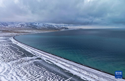 12月16日拍攝的賽里木湖和雪山(無(wú)人機(jī)照片)。(新華社發(fā) 徐銳 攝)