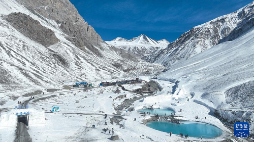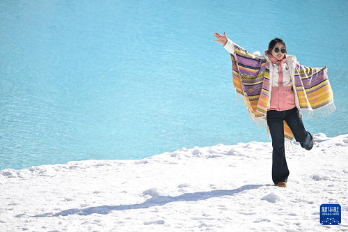 12月25日,游客在青海省海北藏族自治州門源回族自治縣的崗什卡雪峰景區(qū)內(nèi)游玩。(新華社記者 張龍 攝)