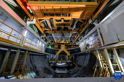 1月6日,“深江1號(hào)”盾構(gòu)機(jī)在珠江入??诤F矫嫦戮蜻M(jìn)。(新華社記者 毛思倩 攝)