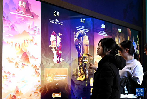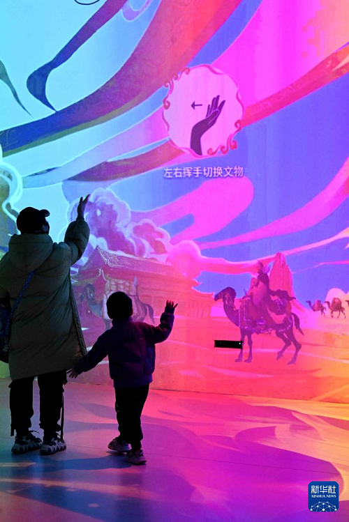 1月13日,參觀者在河北博物院數(shù)字互動體驗展中體驗互動。(新華社發(fā) 陳其保 攝)