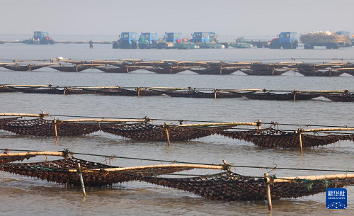 1月15日,江蘇省南通市如東縣長沙鎮(zhèn)濱海村位于黃海的紫菜養(yǎng)殖區(qū)一片忙碌,養(yǎng)殖戶忙著收獲頭水紫菜。據(jù)了解,如東縣紫菜海上養(yǎng)殖面積近8萬畝,紫菜產(chǎn)品出口40多個(gè)國家,全行業(yè)年產(chǎn)值近40億元。