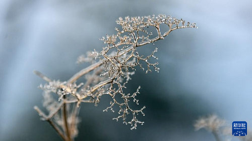 這是1月21日在三江侗族自治縣大塘坳水庫(kù)附近拍攝的被冰凌包裹的花朵。(新華社記者 張愛林 攝)