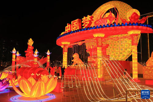 2月11日,市民在甘肅省定西市安定區(qū)新時(shí)代廣場(chǎng)觀(guān)賞花燈。(新華社發(fā) 陳永剛 攝)