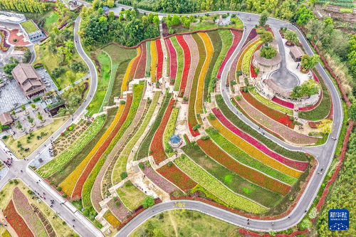 3月18日,游客在重慶市璧山區(qū)古道灣公園游玩(無人機照片)。(新華社記者 唐奕 攝)