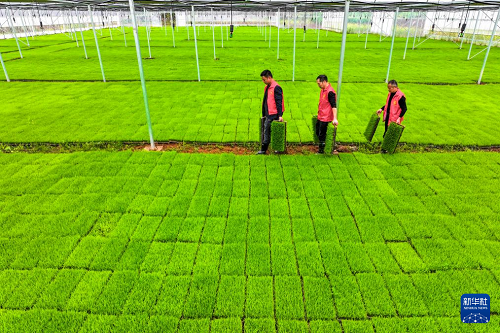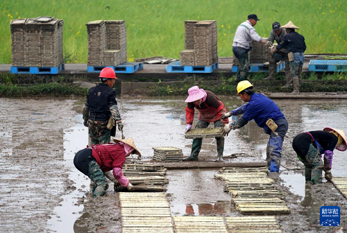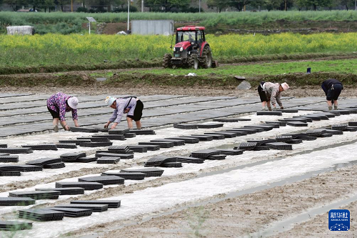 3月29日,農(nóng)民在浙江省樂清市城東街道一處集中育秧點(diǎn)轉(zhuǎn)運(yùn)水稻育秧盤。(新華社發(fā) 蔡寬元 攝)