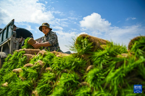 4月1日,在湖南省常寧市蘭江鄉(xiāng)景星村,農民轉運早稻秧苗。(新華社發(fā) 周秀魚春 攝)