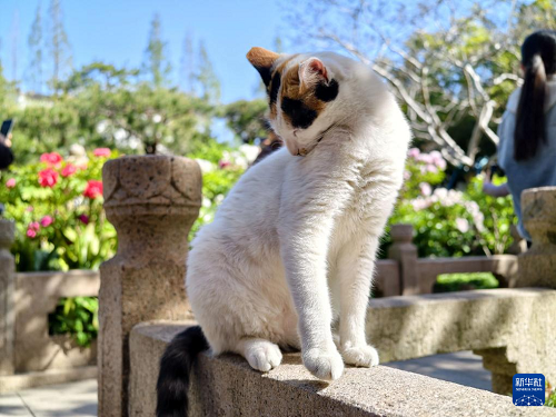 4月7日,一只小貓在上海街頭為自己舔毛。(新華社記者 邢廣利 攝)