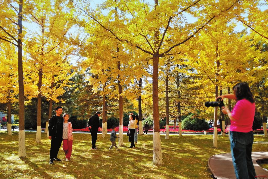 葉落知秋,霜落知寒,但屬于銀杏的時節(jié)才剛剛開始。忻州城區(qū)人民公園絢爛金黃的銀杏把秋日氣息渲染到了極致,使原本蕭瑟的秋季充滿融融暖意。滿樹的金黃,一片片、一簇簇,層疊排開、錯落有致,一陣微風吹過,扇形葉子飄灑而下,如漫天飛舞的金色蝴蝶,在空中翻轉,落成一地金黃,吸引無數游人打卡拍照、流連忘返。(本報記者 李濤 攝)