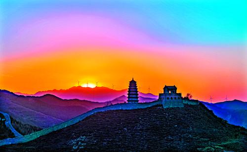 山勢險峻的雁門關(guān),四季都有獨特的風(fēng)景。春天,百花盛開,使得雄渾的長城燦爛奪目;夏天,色彩斑斕,背靠翠綠的山林,呈現(xiàn)生機勃勃的景象;秋天,丹楓如火,由綠轉(zhuǎn)黃,由黃轉(zhuǎn)紅,如詩如畫,美不勝收;冬天,長城被雪花覆蓋,顯得更加滄桑,猶如童話世界般靜謐而誘人。