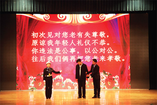 1月27日至29日,偏關(guān)縣公安局交警大隊(duì)交通安全文藝宣傳隊(duì)在隊(duì)長(zhǎng)們的帶領(lǐng)下,先后走進(jìn)市實(shí)驗(yàn)中學(xué)、市客運(yùn)中心、國(guó)家電網(wǎng)忻州供電分公司進(jìn)行了三場(chǎng)演出,用自編自導(dǎo)自演、群眾喜聞樂見的“漫翰調(diào)”、“二人臺(tái)”、北路梆子、民歌等一系列極具地域文化特色的地方小戲、說唱歌舞等曲藝形式進(jìn)行宣傳演出,贏得滿堂喝彩,場(chǎng)場(chǎng)掌聲雷動(dòng)。作為春節(jié)回家路上的一道文化盛宴,這次春節(jié)前的平安出行警示教育“送安全下鄉(xiāng)”巡演是我市公安交警精心策劃、編排的春運(yùn)交通安全宣傳行動(dòng)之一。28日,市客運(yùn)中心人頭攢動(dòng),熙熙攘攘,大廳外懸掛的橫幅標(biāo)語“守護(hù)您的平安出行,保障道路安全暢通是每一位交警的神圣職責(zé)!”格外醒目。候車大廳里,暖意融融,市公安局交警支隊(duì)組織的春運(yùn)交通安全文藝演出正在進(jìn)行,交警版的民間小調(diào)《拜大年》、小品《警鐘聲聲》、雙簧《二愣子》等節(jié)目令人賞心悅目、捧腹不止。在歡笑之余,提醒和教育廣大群眾自覺抵制不文明、不安全交通行為,觀看演出的旅客和客車司機(jī)紛紛感慨,這樣的宣傳教育生動(dòng)形象,人人愛看且耐人尋味,警示作用很大。