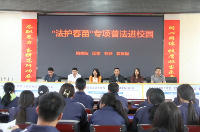 新學(xué)期伊始,為進(jìn)一步提升未成年人法治意識、法治觀念和自我保護(hù)能力,9月9日,靜樂縣檢察院攜手縣人大、教體局、團(tuán)縣委、婦聯(lián)共同走進(jìn)靜樂縣職業(yè)中學(xué)開展“法護(hù)春苗”法治進(jìn)校園活動,將法治關(guān)懷與守護(hù)送到學(xué)生身邊。院黨組書記、檢察長李冰參加活動。