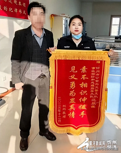 12月16日晚,一名市民因飲酒過量倒在雪夜路旁,幸得忻州市公安局交管支隊(duì)事故預(yù)防和處理指導(dǎo)大隊(duì)輔警范辰霞及時發(fā)現(xiàn)并救助,最終化險(xiǎn)為夷。12月22日,獲救市民專程送來錦旗,向危難時刻伸出援手的交警同志表達(dá)謝意。