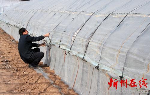 春回大地 ,萬物復蘇。2月23日,原平市田野上農民們已開始勞作,為春播做好準備,這是正在為新建的蔬菜大棚鋪膜覆蓋,準備育苗。(趙月仁 攝)