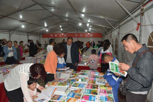 近日,定襄縣金鼎廣場(chǎng)的圖書(shū)展銷受到廣大群眾的熱烈歡迎,主辦方專門設(shè)置了閱覽區(qū),群眾不僅能享受圖書(shū)折扣,還能免費(fèi)閱覽所有圖書(shū)。此次活動(dòng)是定襄縣“我的中國(guó)夢(mèng),書(shū)香飄萬(wàn)家”全民閱讀推廣主題活動(dòng)之一,為期15天。圖為5月12日,群眾在書(shū)展上購(gòu)書(shū)閱讀。(劉小苗)
