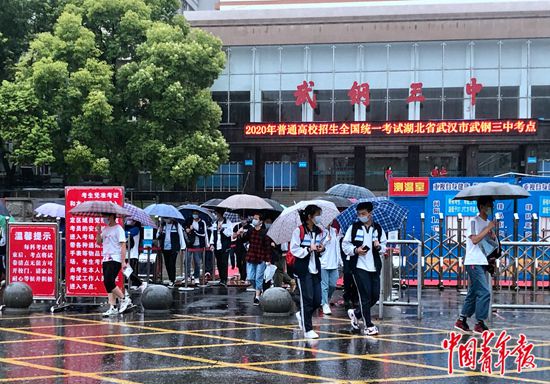 7月7日上午,湖北省武漢市武鋼三中考點,語文考試結束后,考生們陸續(xù)走出考場。中青報·中青網記者 朱娟娟/攝