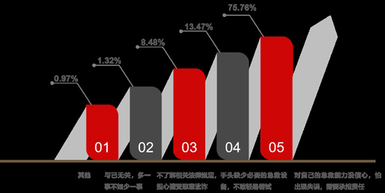 廉思課題組的報告顯示,缺乏急救知識是大學生不愿參與現(xiàn)場急救的原因之一。當遇到呼吸停止的無意識人員時,68.33%的被調查者選擇“撥打120,并在原地等候”,能“立即上前查看,并采取急救措施”的只有25.76%。