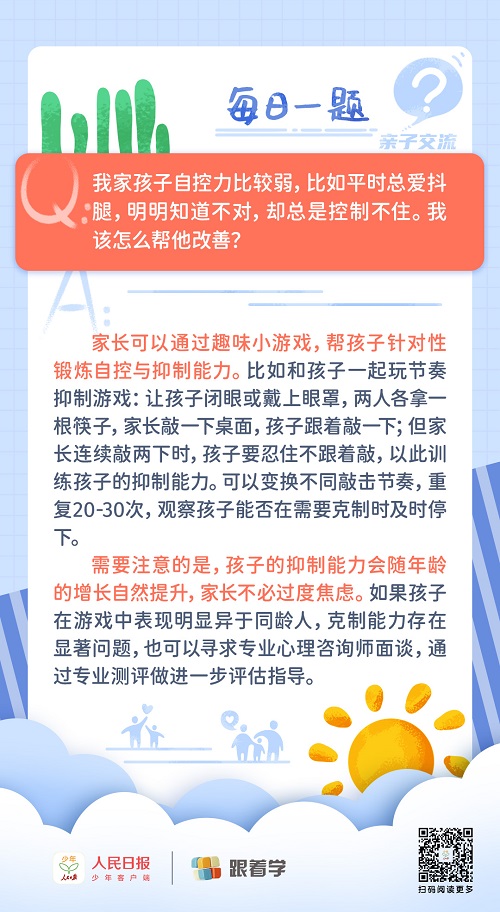 每日一題丨孩子自控力差,總控制不住抖腿,該怎么辦?