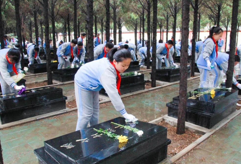 在祭奠活動(dòng)中,同學(xué)們跟隨盧俊芬老師一道學(xué)習(xí)了趙正午烈士的革命故事,為烈士陵園的先烈們敬獻(xiàn)花籃、默哀,并細(xì)致的擦拭了每座烈士墓碑,以此表達(dá)對先烈們的無限哀思。
