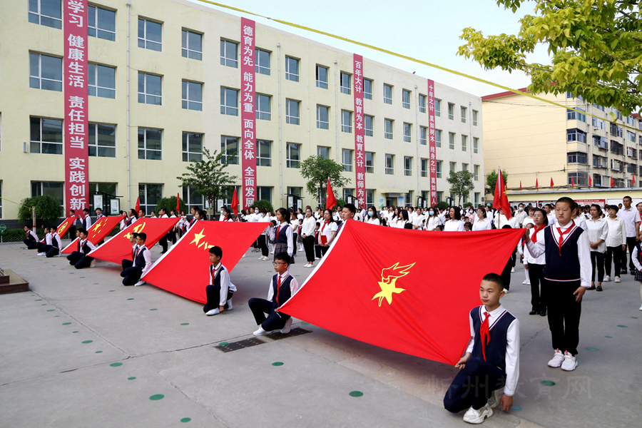 高舉隊旗跟黨走,革命薪火代代傳。恰逢中國共產(chǎn)黨建黨百年的重要歷史節(jié)點,5月20日上午,忻州市云中路小學(xué)隆重舉行了“紅領(lǐng)巾心向黨,爭做新時代好隊員”新隊員入隊儀式。云中路小學(xué)杜潤生校長、劉志勇書記等主要領(lǐng)導(dǎo)出席本次活動。從此又一批云小學(xué)子,在星星火炬的指引下,雛鷹展翅,夢想遠(yuǎn)航。