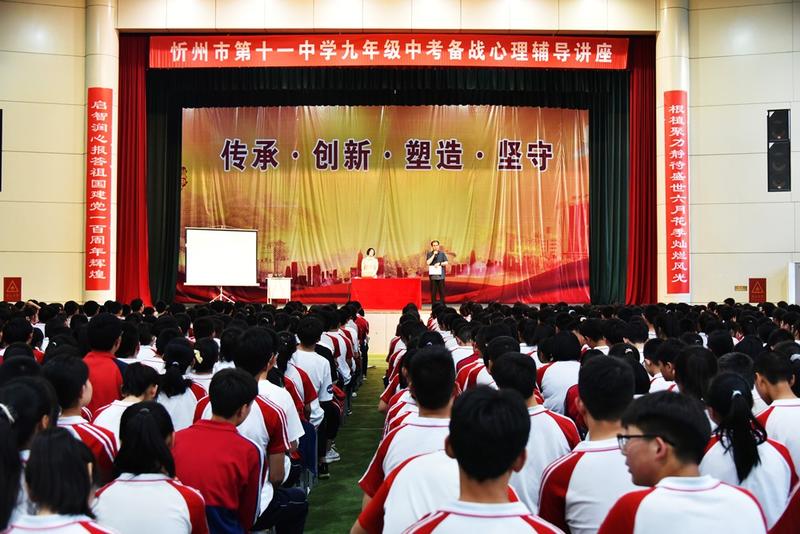 本網(wǎng)訊 6月3日晚,忻州十一中特邀資深心理專家張廣梅老師在文體苑為九年級(jí)學(xué)生做了中考備戰(zhàn)心理輔導(dǎo)講座。校長(zhǎng)張?jiān)崎L(zhǎng)主持講座并講話。