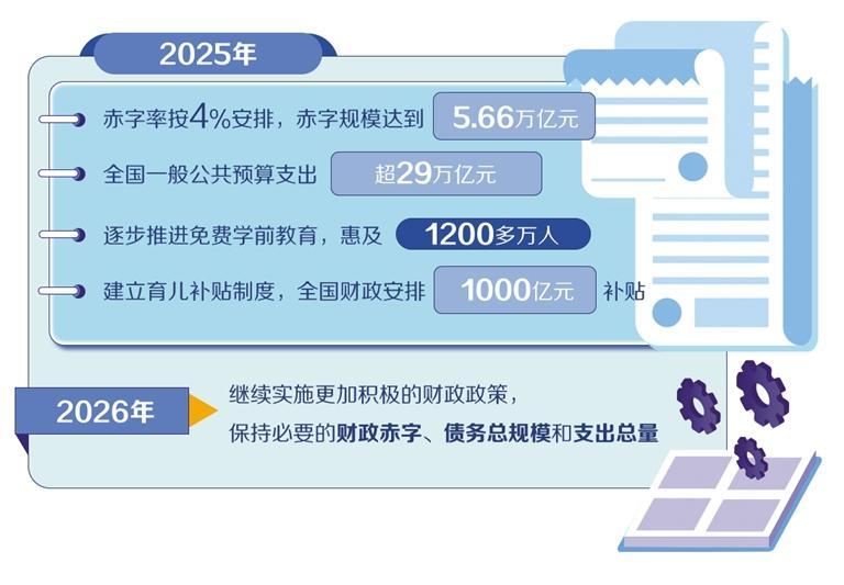 按照部署,2026年我國將會保持必要的財政赤字、債務(wù)總規(guī)模和支出總量。