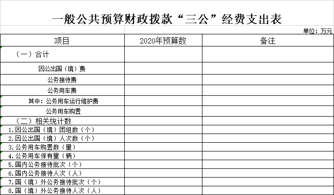 我單位是全額事業(yè)單位,財政只撥付人員經(jīng)費。從財政撥款中沒有支出“三公經(jīng)費”,“三公經(jīng)費”數(shù)字為0,故有關(guān)“三公經(jīng)費”的內(nèi)容均無。一般公共預算“三公”經(jīng)費支出表、“三公”經(jīng)費增減變化原因及因公出國、公務(wù)用車、公務(wù)接待等項均無數(shù)字。也沒有因公出國(境)團組數(shù)及人數(shù),“公務(wù)用車購置和運行費”為0。