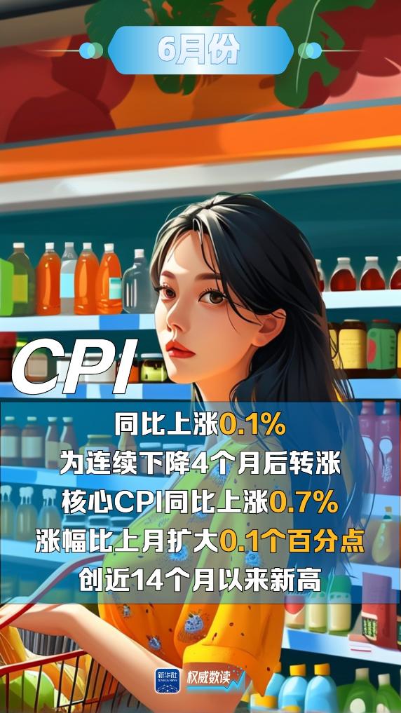 國家統(tǒng)計局9日發(fā)布數據顯示,6月份,擴內需、促消費政策持續(xù)顯效,居民消費價格指數同比由上月下降轉為上漲0.1%;環(huán)比下降0.1%,降幅比上月收窄0.1個百分點;扣除食品和能源價格的核心CPI同比繼續(xù)回升,上漲0.7%。工業(yè)生產者出廠價格指數環(huán)比下降0.4%,降幅與上月相同。