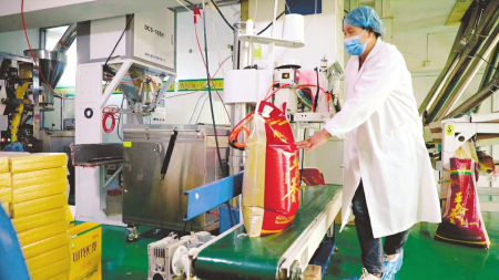 位于蔡家會(huì)鎮(zhèn)的興縣山花爛漫農(nóng)業(yè)綜合開發(fā)有限公司,日精加工50噸谷子成套設(shè)備生產(chǎn)流水線上,經(jīng)過初篩、精選、加工、包裝后的袋裝小米經(jīng)過傳輸帶被送往庫房,等待裝車發(fā)貨?!拔覀兊漠a(chǎn)品涵蓋有機(jī)小米、綠豆、莜面、豇豆面、亞麻籽油等,年加工雜糧、油料可達(dá)4萬多噸。”公司董事長(zhǎng)賀虎平介紹,自2005年“山花爛漫”商標(biāo)注冊(cè)以來,已與興縣50多個(gè)自然村,916戶農(nóng)戶,簽訂訂單農(nóng)業(yè)近3萬畝,其中脫貧戶430多戶,戶均收入達(dá)到1.5萬余元/年。