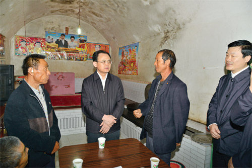 圖為李俊明在保德縣窯洼鄉(xiāng)前白家梁村了解群眾搬遷意愿和實(shí)地脫貧情況。(范濤 攝)