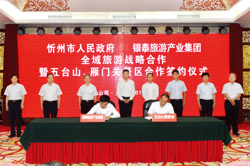 簽約儀式上,市長鄭連生和銀泰旅游產(chǎn)業(yè)集團(tuán)總裁倪海濤分別代表雙方簽訂全域旅游戰(zhàn)略合作協(xié)議。五臺(tái)山管委會(huì)與銀泰旅游產(chǎn)業(yè)集團(tuán)簽訂五臺(tái)山景區(qū)戰(zhàn)略合作協(xié)議;代縣縣政府與銀泰旅游產(chǎn)業(yè)集團(tuán)簽訂雁門關(guān)景區(qū)戰(zhàn)略合作協(xié)議。