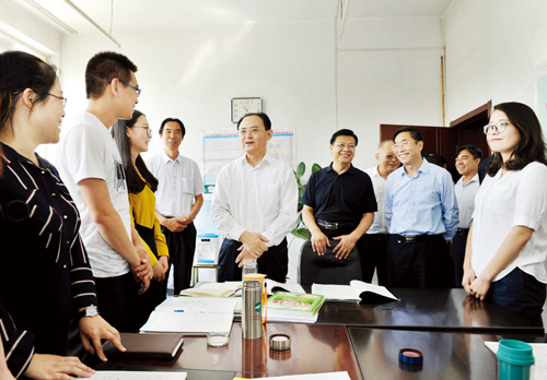 圖為市委書(shū)記李俊明在忻州一中看望教師。本報(bào)記者 劉紀(jì)森 攝