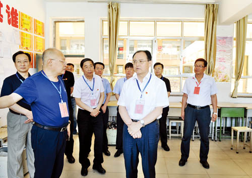 圖為省人大常委會(huì)副主任、市委書(shū)記李俊明在忻州一中考點(diǎn)巡視高考工作。(本報(bào)記者 劉紀(jì)森 攝)