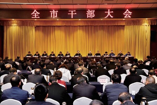 圖為全市干部大會(huì)會(huì)場(chǎng)。