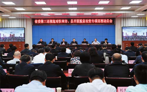 圖為省委第三巡視組對忻州市、縣開展脫貧攻堅專項巡視動員會會場。本報記者 劉紀森 攝