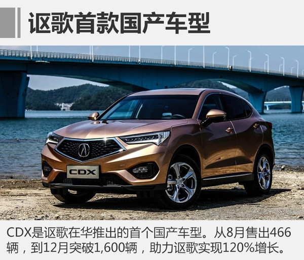 2016年7月,首款國產(chǎn)車型CDX正式上市,新車定位緊湊型SUV,同時(shí)也是謳歌產(chǎn)品體系中級別最小SUV車型。CDX上市后逐漸得到市場的認(rèn)可,從8月份的466輛,增長至11月份的1,110輛,12月更是突破1,600輛。