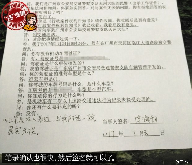 把分?jǐn)?shù)處理完后,心里算是松了一口氣,終于到了最后一步:取證。當(dāng)時(shí)被扣行駛證,我問在場的交警除了把違章處理完,還需要帶什么證件過去。記得他當(dāng)時(shí)的回答是帶上身份證、駕駛證以及行駛證被扣留的憑證即可。所以在確認(rèn)違章完全處理完畢后,我就帶上上述提到的證件和材料去了天河交警大隊(duì)交通違法處理室,可卻無功而返。