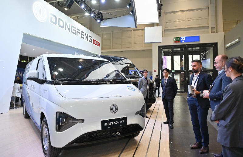 (資料圖片)2024年9月16日,在德國(guó)漢諾威國(guó)際交通運(yùn)輸博覽會(huì)媒體預(yù)展上,人們?cè)跂|風(fēng)汽車(chē)展區(qū)參觀E-STAR V7商用車(chē)。新華社記者 任鵬飛 攝