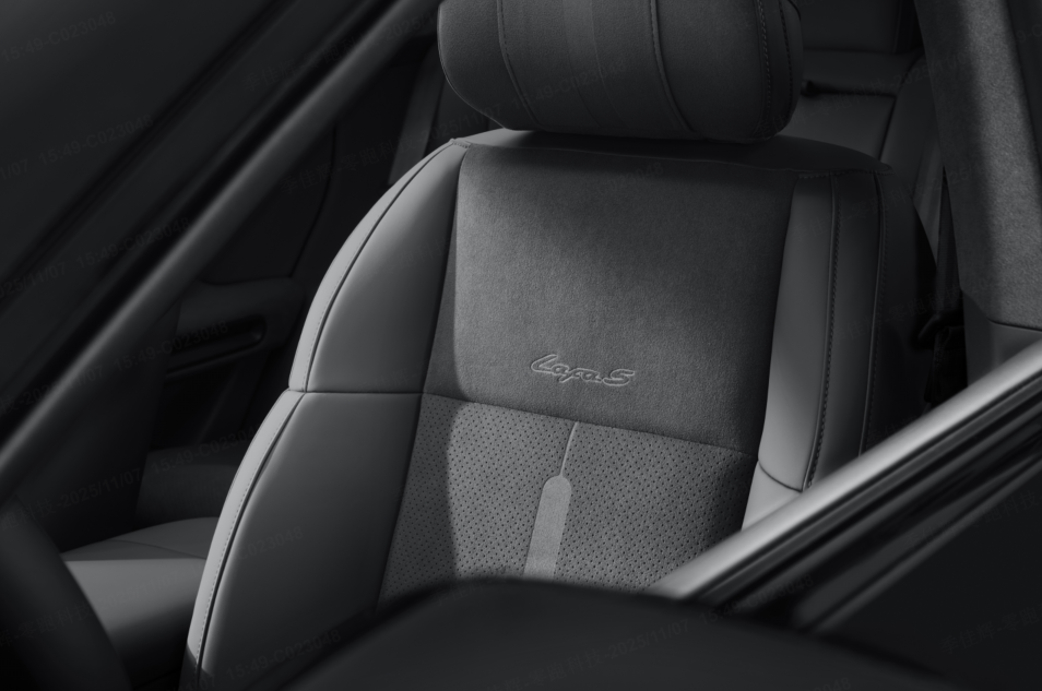 內(nèi)飾配色提供速域紫、馳影灰、競速灰三種選擇,速域紫夜色霓虹與尾焰的顏色,極具時(shí)尚與運(yùn)動感;馳影灰靈感源于賽道柏油的中性灰調(diào),理性而不平庸;競速灰質(zhì)感運(yùn)動、出眾,采用5.54㎡仿麂皮超纖絨與Nappa全粒面真皮拼接,座椅上“延伸賽道”紋理與“Lafa5”專屬字標(biāo)燙印,在細(xì)節(jié)處彰顯豪華運(yùn)動質(zhì)感。