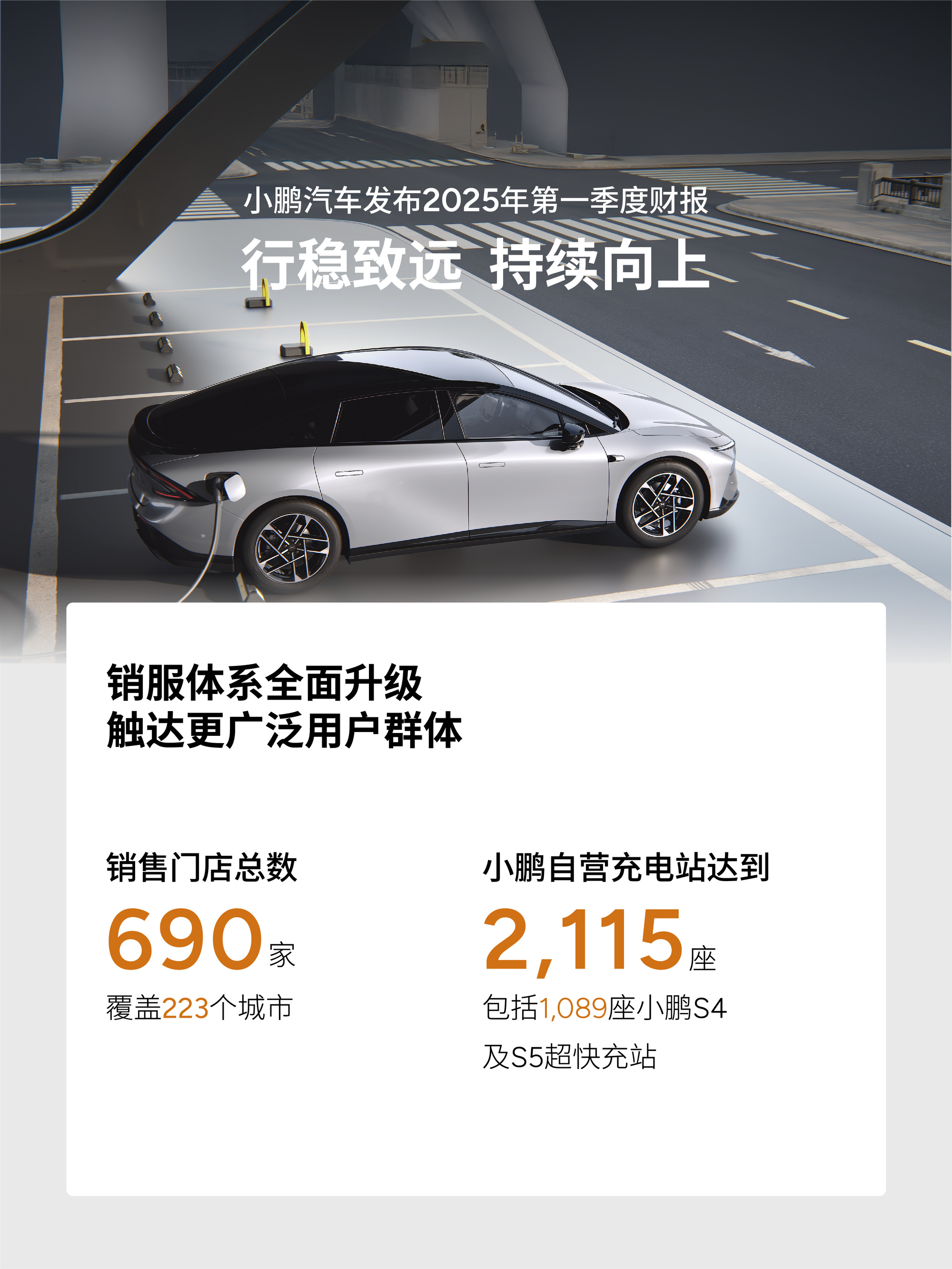 為了支持銷售,小鵬汽車正在加快銷售與充電網(wǎng)絡(luò)布局。截至3月31日,小鵬汽車擁有共計(jì)690家門店,覆蓋223座城市;自營(yíng)充電站網(wǎng)絡(luò)進(jìn)一步擴(kuò)展至2115座充電站,包括1089座小鵬S4及S5超快充站。